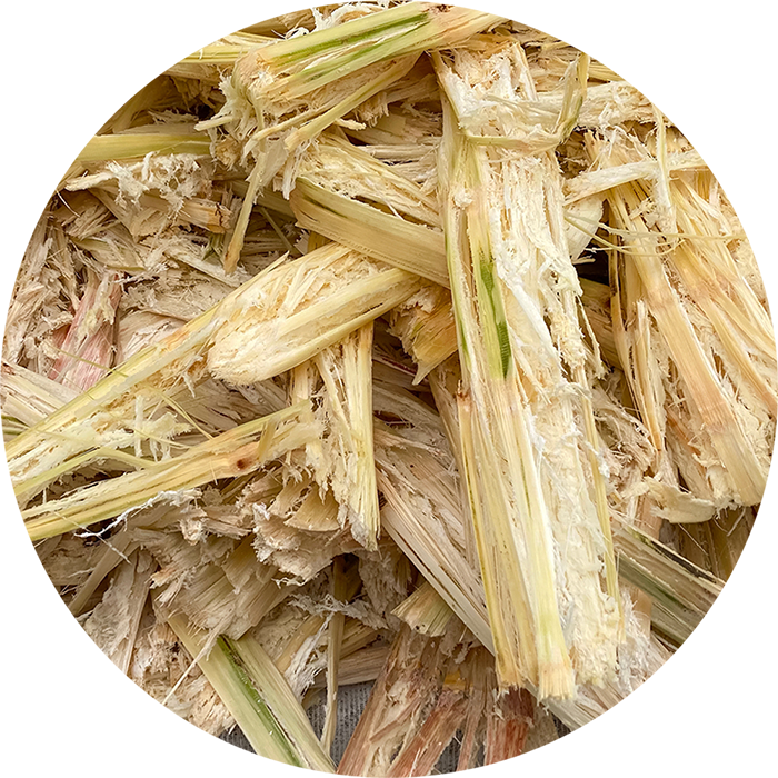 Bagasse is the fiber of the sugarcane plant. It is a natural waste product from the production of sugar.